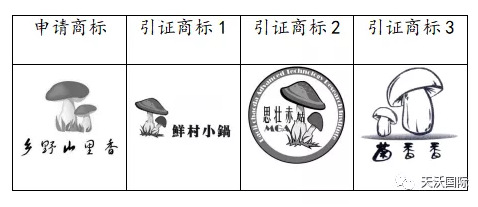 通过以上分析,申请商标的显著部分“乡野山里香”与引证商标1的显著部分“鲜村小锅”、引证商标2的显著部分“思壮赤姑”、引证商标3的显著部分“菌香香”存在本质不同,对于中国公众来说,十分简单就可以将几者区分出来,不会造成任何的混淆与误认。